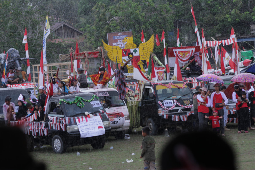 Ratusan warga dan Puluhan kendaraan mengikuti karnaval dengan tema perjuangan yang di ikuti 24 RT serta instansi Sekolah Dasar maupun TK. karnaval ini di harapkan bisa meningkatkan nasionalisme dan kerukunan antar warga.